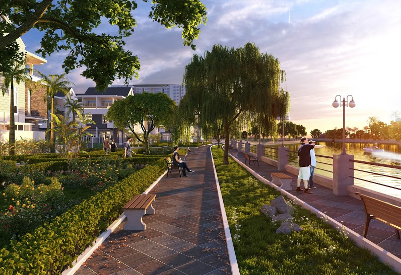 6. Công viên dọc bờ sông xanh mát, diện tích 5426m2 được thiết kế ấn tượng.